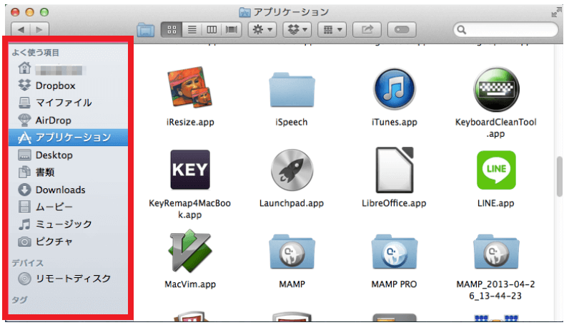 ※サイドバー…Finderの左側に表示される灰色の部分です。▼