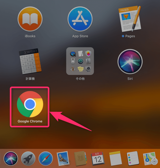 1.画面下に表示されているロケットマークのようなアイコン[Launchpad(ランチパッド)]をクリックします。
