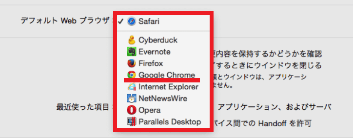 ④インストール済みのブラウザが表示されますのでその中から[Google Chrome]を選択します。
