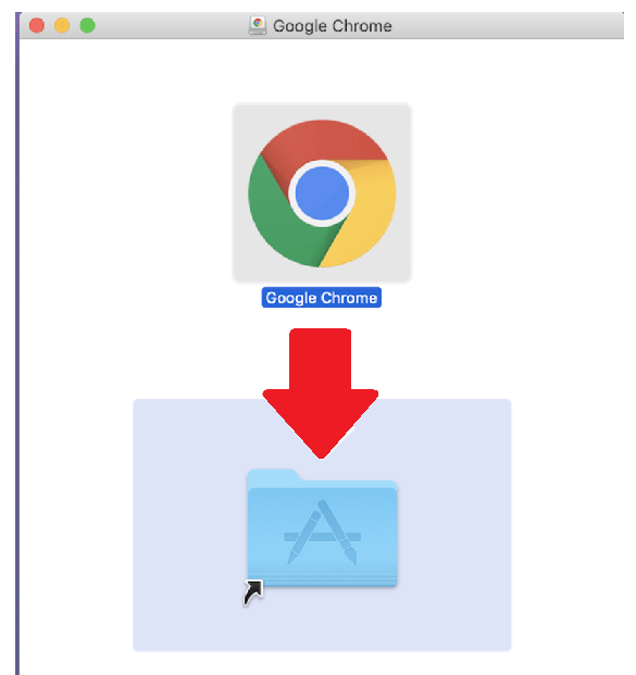 ※ドラッグ&ドロップ…アイコン(この場合はGoogle Chrome)の上にカーソル(矢印)を合わせ、左クリックをした状態のままアイコンを動かし、移動したい場所(この場合はアプリケーションフォルダ)で離す動作のことです。